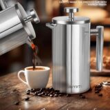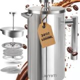 Experience the rich, full-bodied flavor of your favorite coffee with our French Press Coffee Maker. Crafted from durable 304 stainless steel, this sleek and stylish coffee press is designed for both kitchen use and outdoor adventures. With a generous capacity of 34 ounces (1 liter), you can brew enough coffee for yourself and your guests, making it perfect for gatherings or camping trips.