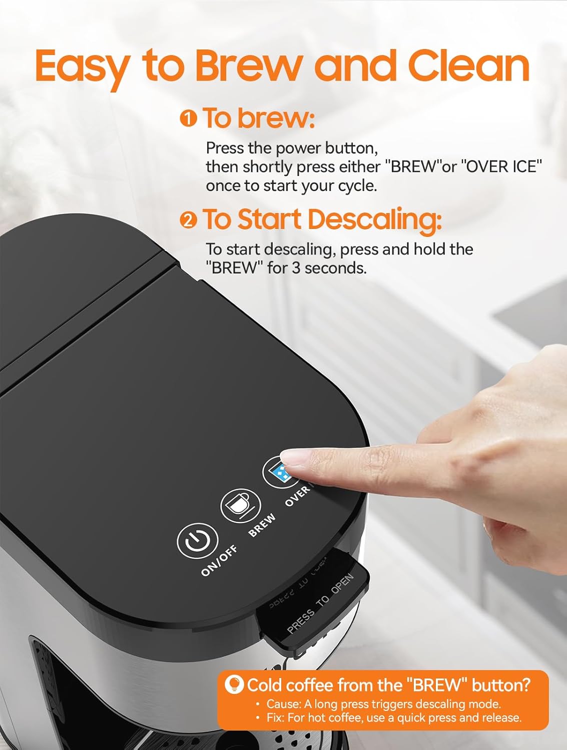 The sleek black design makes it an attractive addition to any kitchen, while its compact size is perfect for home, travel, RV, or dorm use. The Horavie Single Serve Coffee Maker features a convenient descaling alert, ensuring that your machine stays in top condition for optimal performance. Say goodbye to long waits at coffee shops and hello to fresh, delicious coffee brewed right at your fingertips.
